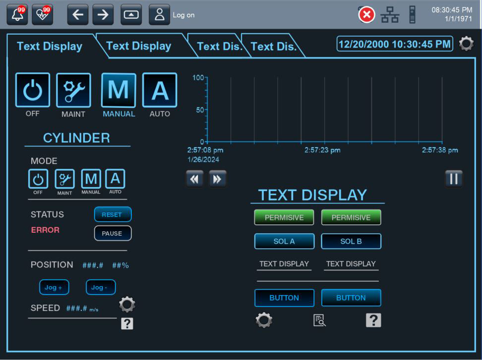 An example of some samples I made through Studio 5000 by Rockwell. The client wanted to renovate the HMI screens the were using to have a consistent, unique, design that could be recognized and make the process more efficient in the future.